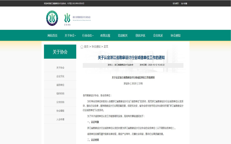 關(guān)于認(rèn)定浙江省勘察設(shè)計行業(yè)誠信單位工作的通知