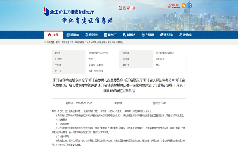 浙江省就深化房屋建筑和市政基礎(chǔ)設(shè)施工程施工圖管理改革,特提出實施意見。