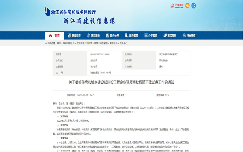 為確保浙江省順利開展建設(shè)工程企業(yè)資質(zhì)審批權(quán)限下放試點,結(jié)合浙江省實際,特將有關(guān)事項通知如下。